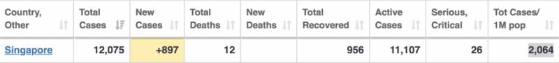 但是现在新加坡也已经1万2015例,每百万人口就有2064个人确诊,而一个月前,新加坡的每百万人确诊还只有一百多人......