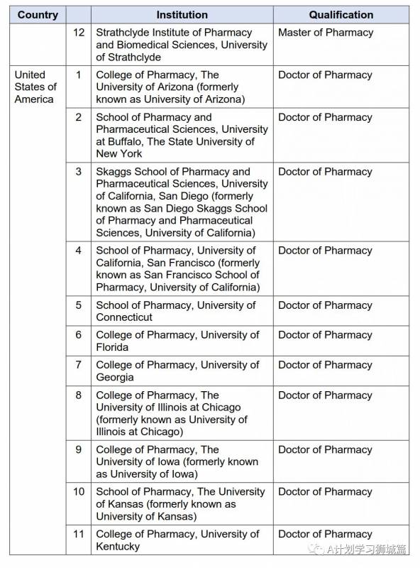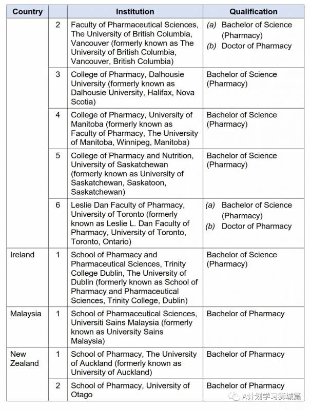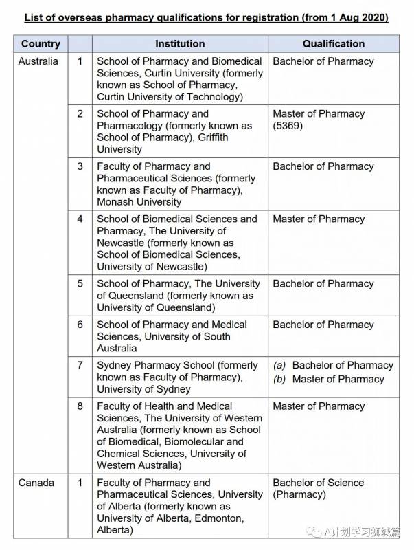 新加坡卫生部公布:明年8月起,受新加坡承认海外大学药剂文凭清单