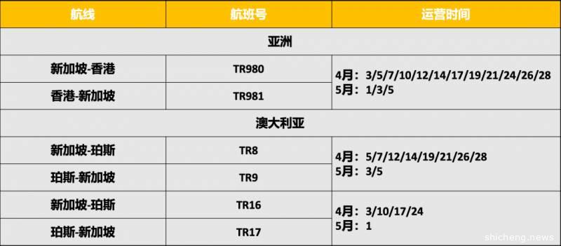 请留意,4月29日-5月15日期间,除以上航班外,新航及胜安航空其余中国-新加坡航班的客运服务已取消,后续航班新航及胜安航空将根据疫情防控情况做动态调整。 新加坡酷航