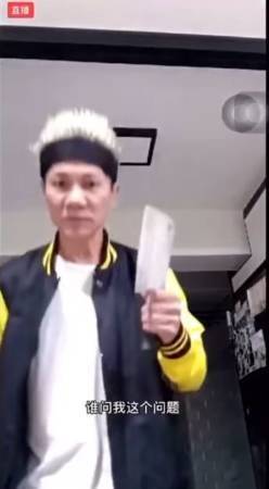 配合王雷一贯的娱乐形象,开玩笑的拿起刀子看他直播的网民们一起互动。