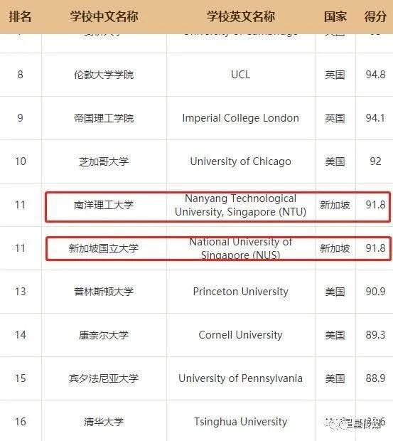 根据全球高等教育研究机构QS(Quacquarelli Symonds)发布的2020年版QS世界大学排名,新加坡南洋理工大学和新加坡国立大学在世界大学排名中并列全球第11位,领跑亚洲各大学!