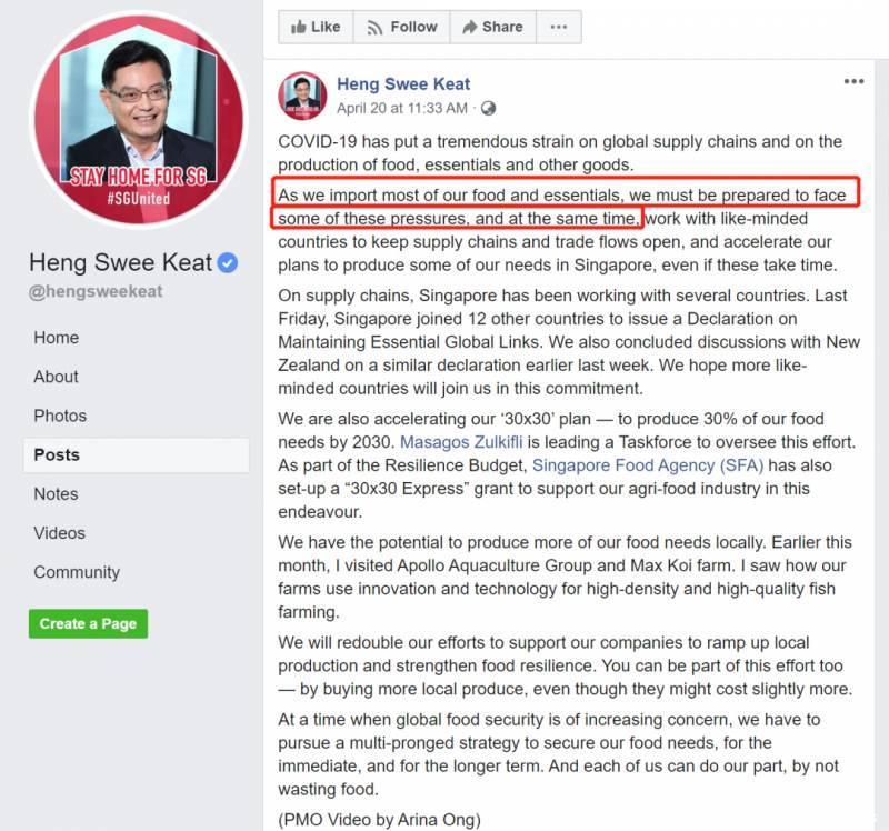在Facebook贴文的后面,王瑞杰继续解释:好在,新加坡已经在上星期就同12个国家合作,发出声明,致力维护全球贸易和必需品的供应链。