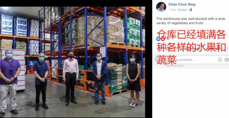 就在第二天4月22日星期三,贸工部长陈振声在自己的FB晒照片,表示合作国的物资已经运到了。