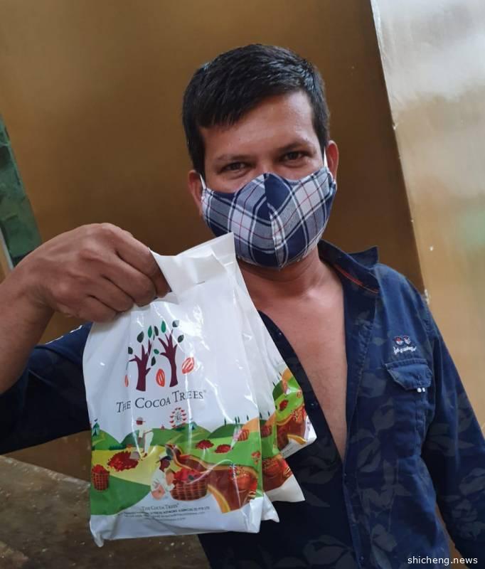 本地的巧克力精品店可可树最近向蓝星宿舍和利奥宿舍的移民工人捐赠了巧克力糖果袋。