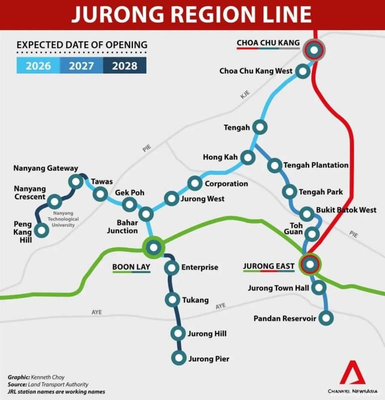 已规划的地铁裕廊区域线Jurong Regional Line依然会分3段进行,第一阶段预计2026年通车。