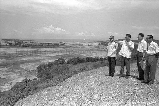 时任总理李光耀同经发局长韩瑞生在裕廊选址考察 (1962.10.27)