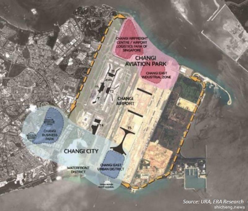 机场南部将新建樟宜东市区 Changi East Urban District,和以西的樟宜商业园与新加坡科技与设计大学 SUTD 遥相呼应,将由多个办公楼、商场和酒店组成一个新的商圈,也将和现有的樟宜会展中心和丹那美拉渡轮码头形成联动。