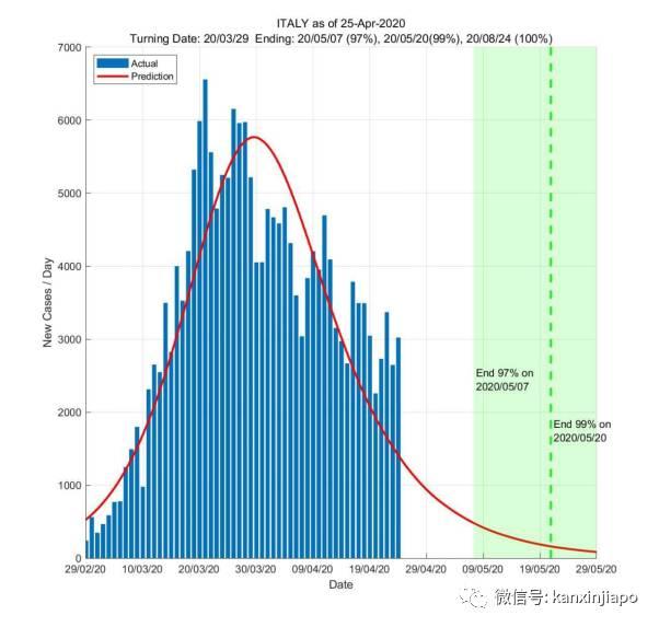 4月25日意大利疫情走势预测:3月29日出现拐点,5月7日清除97%病例,5月20日左右清除99%病例。