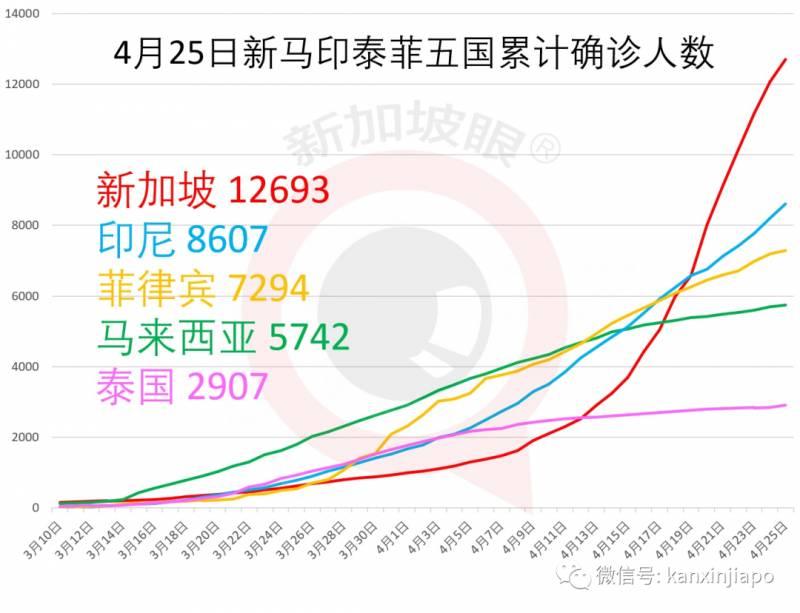 邻国方面,印尼累计确诊8607例,菲律宾7294例,马来西亚5742例,泰国2907例。