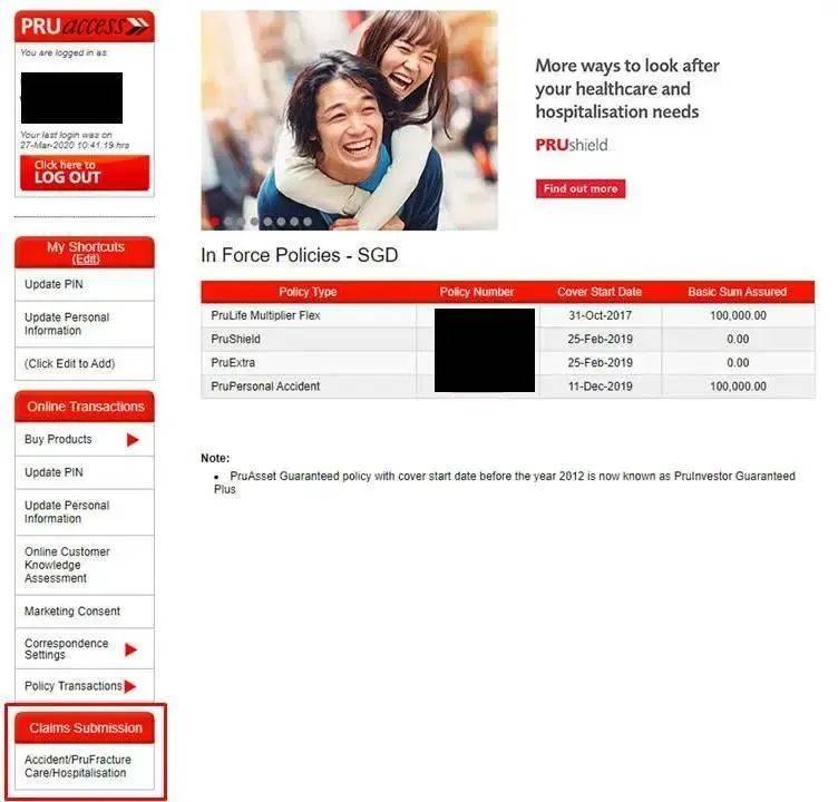 意外险可进行线上理赔,受保人只需登录PRUaccress,便能在左下角找到理赔入口。还没有设置PRUaccess的小伙伴可以参考 狮城财富通 | 如何使用PRUaccess 进行了解。