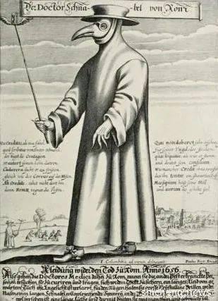 人类历史上真正意义的口罩,就是起源于中世纪“黒死病”瘟疫流行时,法国宫廷医生的 “鸟嘴时尚装”。