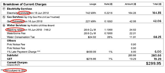 最后还有新加坡著名的标志GST,也就是新加坡消费税,是的,缴交水电煤气的费用也需要支付7%消费税。