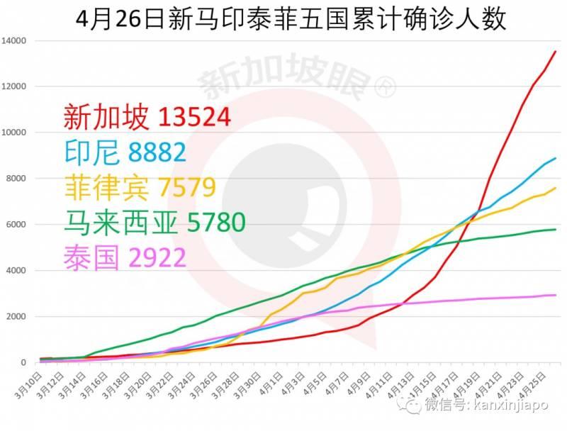 邻国方面,印尼累计确诊8882例,菲律宾7579例,马来西亚5780例,泰国2922例。