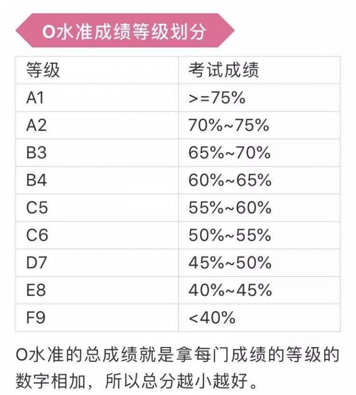 新加坡的O水准计分方式是等级式,O水准的出题和阅卷都会在英国进行,成绩结果回到新加坡后,新加坡教育部会根据当年考试成绩的整体情况做出调整,学生的最终成绩是根据在当年全国总成绩的百分比位置,A1是最好的成绩,占前10%,A2次之,以此类推。