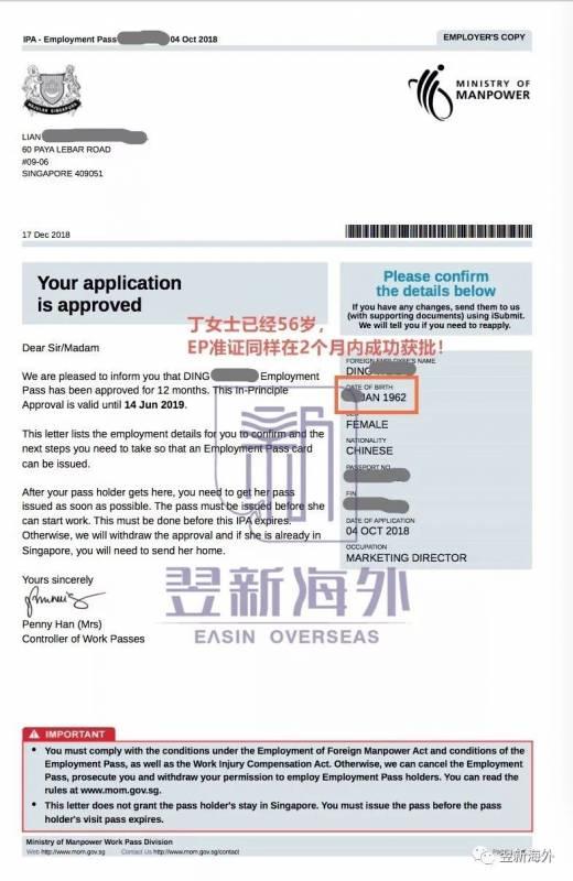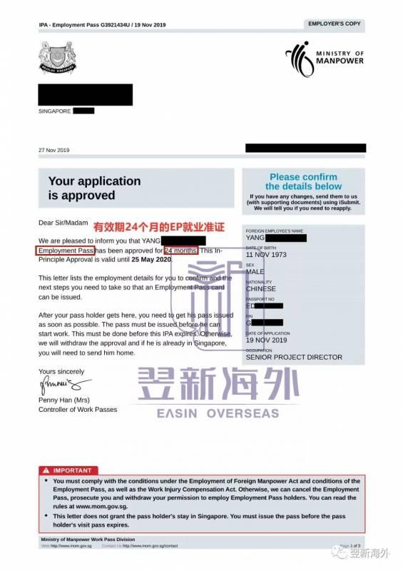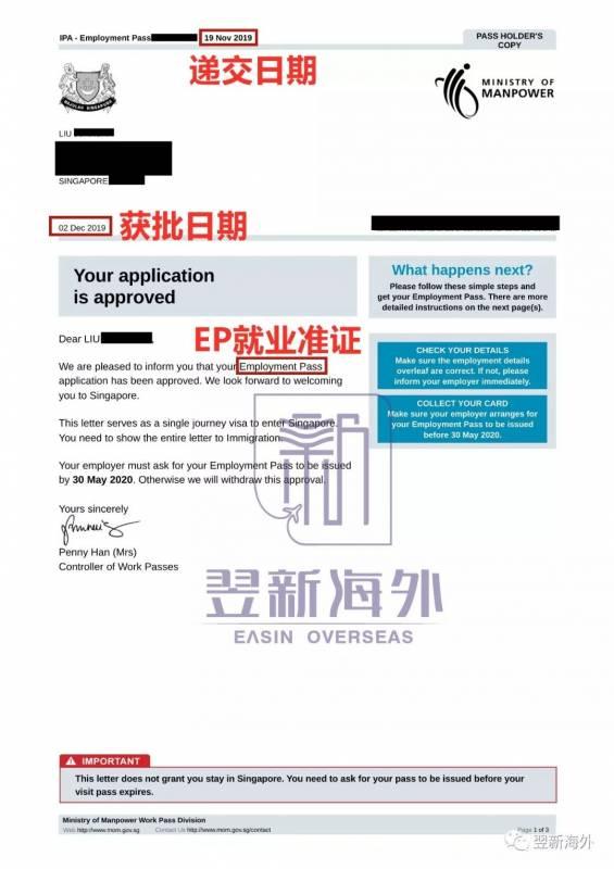 左右滑动,看#翌新海外#客户EP准证及PR批准函