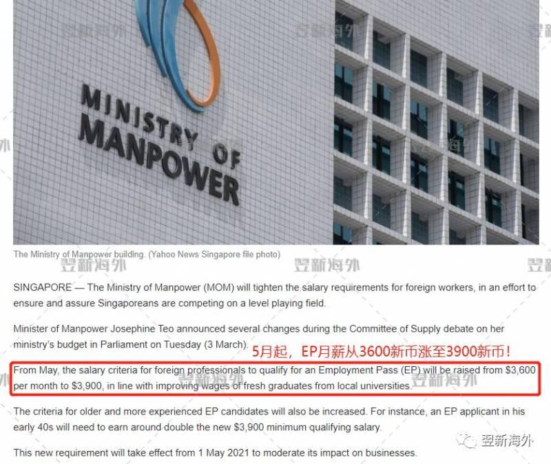 今年3月,人力部重磅宣布,即将调高EP准证的最低月薪要求:从目前的3600新币上调至3900新币,新准证申请今年5月生效,准证续签明年5月生效。