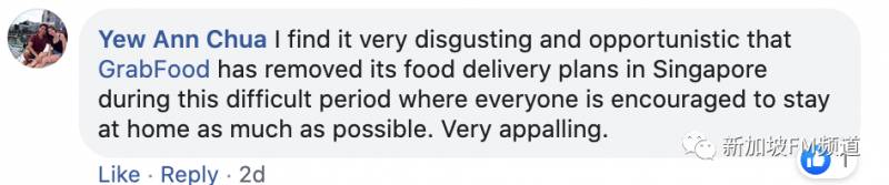 中文:Grabfood居然在新加坡这么艰难的疫情时期取消免费送擦配套。我觉得真是太恶心了。利用这个机会赚钱?非常令人震惊!