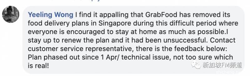 新加坡本地送餐平台GrabFood取消免费送餐配套,不让用户续订,引发用户不满,认为不应在阻断措施期间这么做。