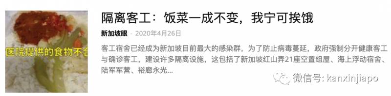 图源:新加坡外交部长维文Facebook 近期,新加坡提供的免费客工伙食也引起热议,也有中国籍客工给新加坡眼反映隔离期间的伙食质量不佳。