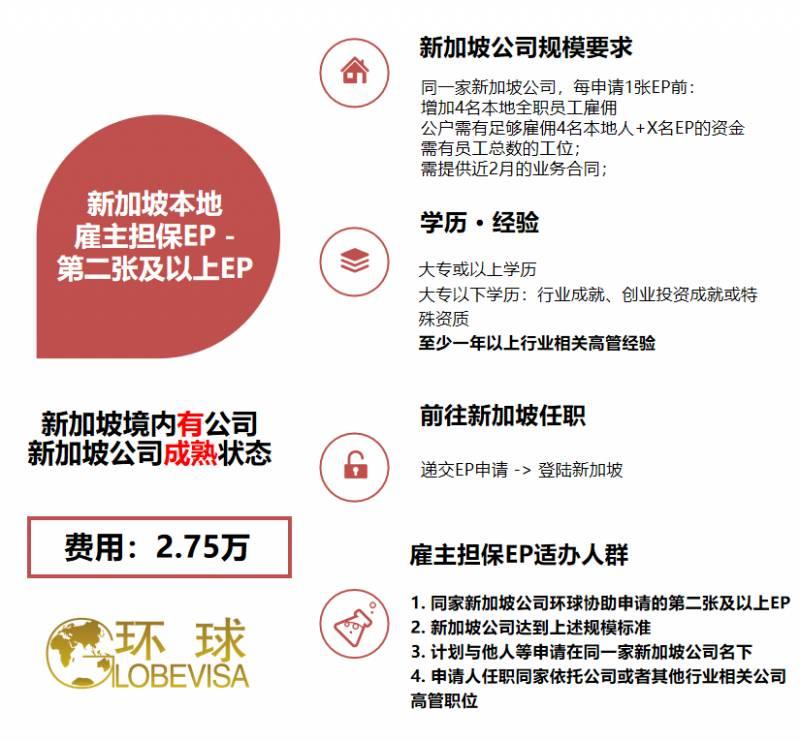 而当这家新加坡公司进行深度落地后便可申请其他高管EP在该公司名下。第二张及以上的EP申请人可以是任职同家国内公司或者其他行业相关公司的高管人士。第二张EP目前我们主要办理的申请人都是家人和股东关系,这个项目非常适合计划与他人办理在同一家新加坡公司名下进而实现移民的申请人。