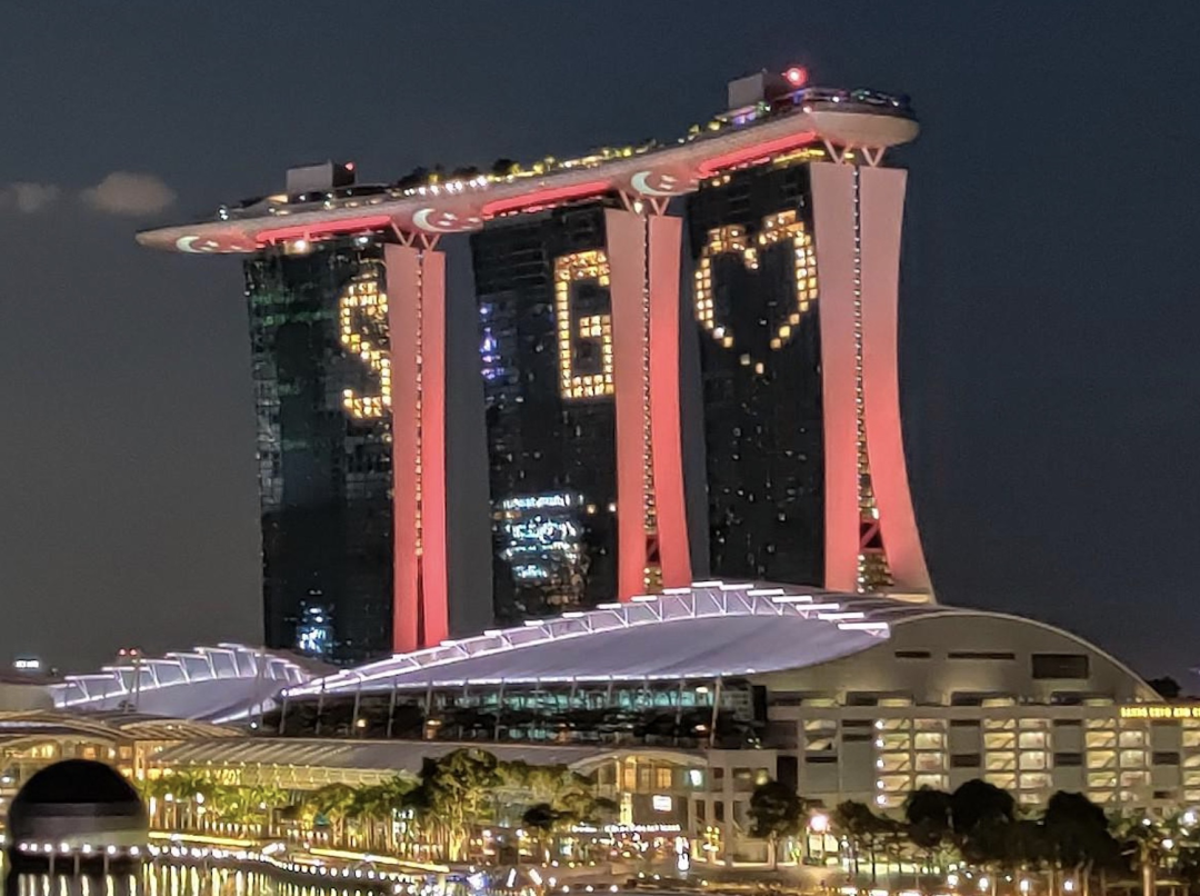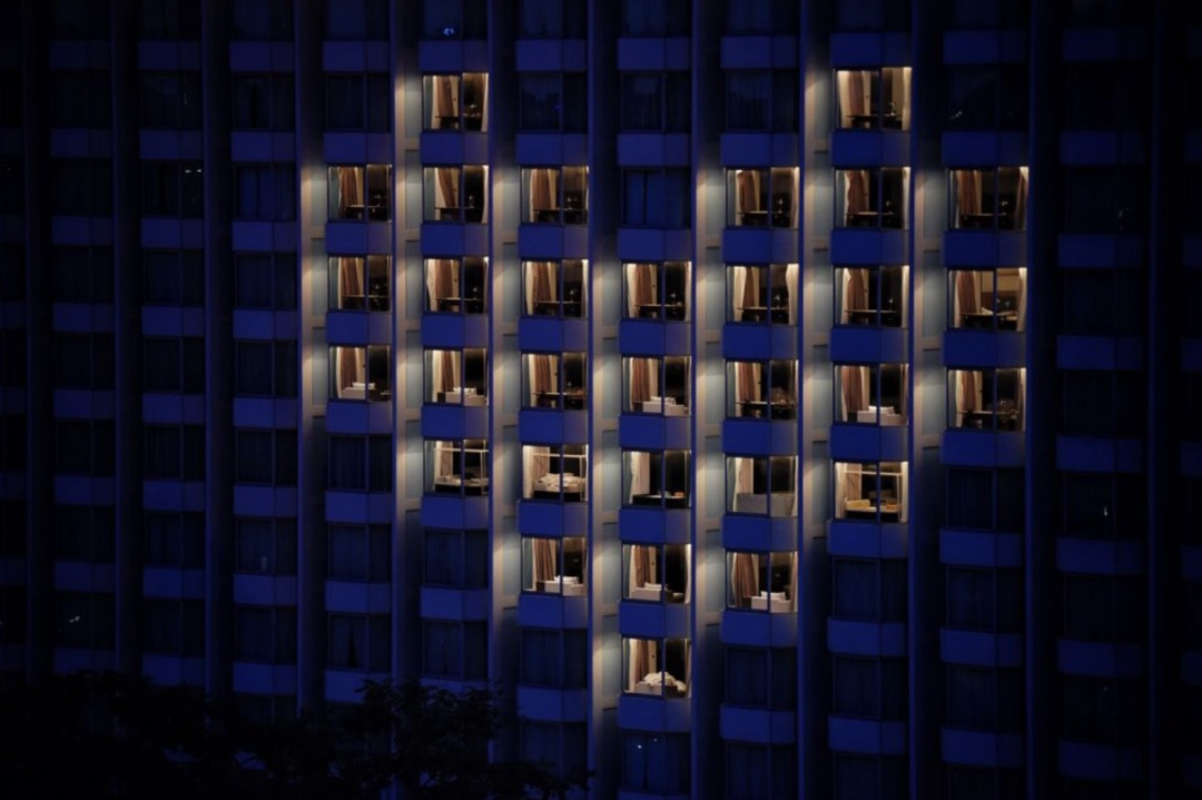 新加坡香格里拉酒店在窗户上映出了一个“”