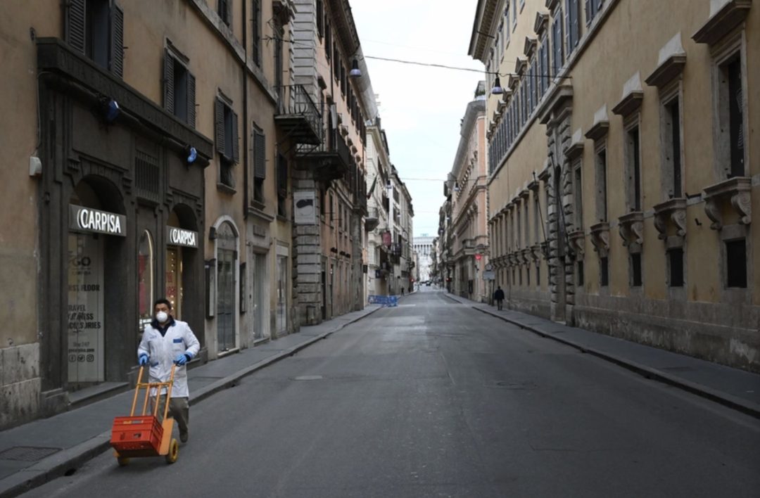 当时的意大利正在拚命抑制疫情扩散,关闭了除药房和食品店以外的所有商店。