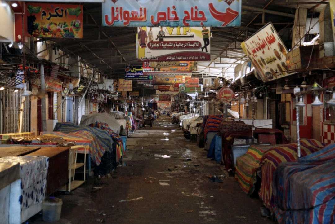 伊拉克当局实施宵禁期间,彩蝶尤尼斯市场全是空的。