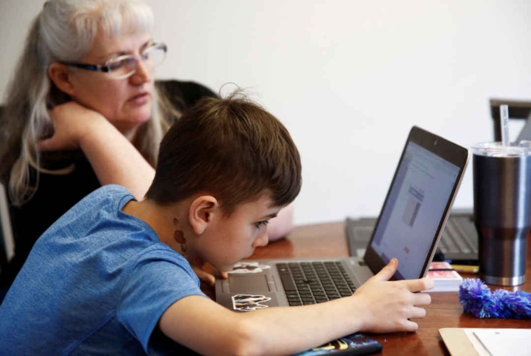 米勒是小学四年级的学生,疫情期间只有祖母和他在家。