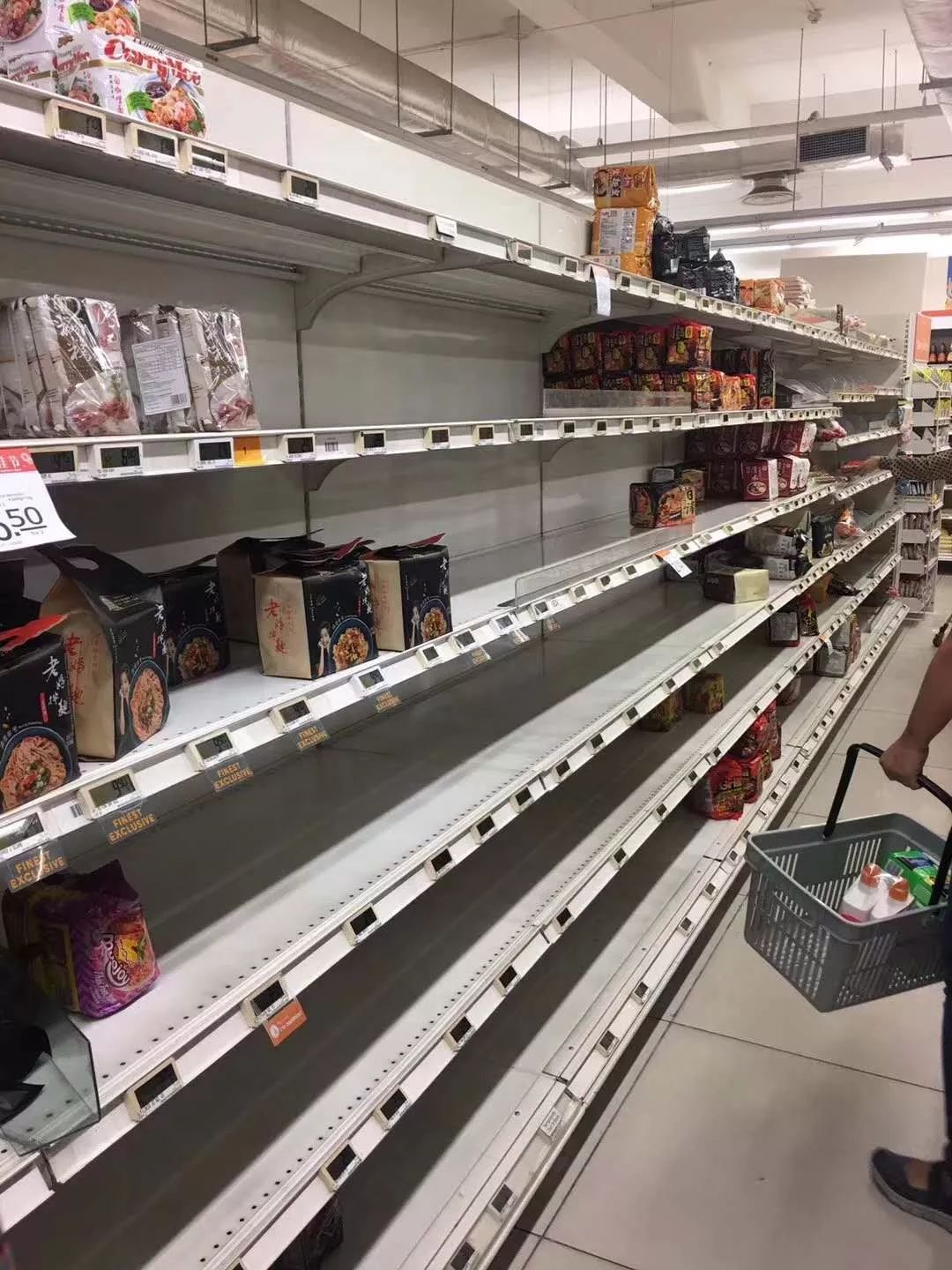 当时全岛各大超市的货架,基本上都被抢购得差不多了......