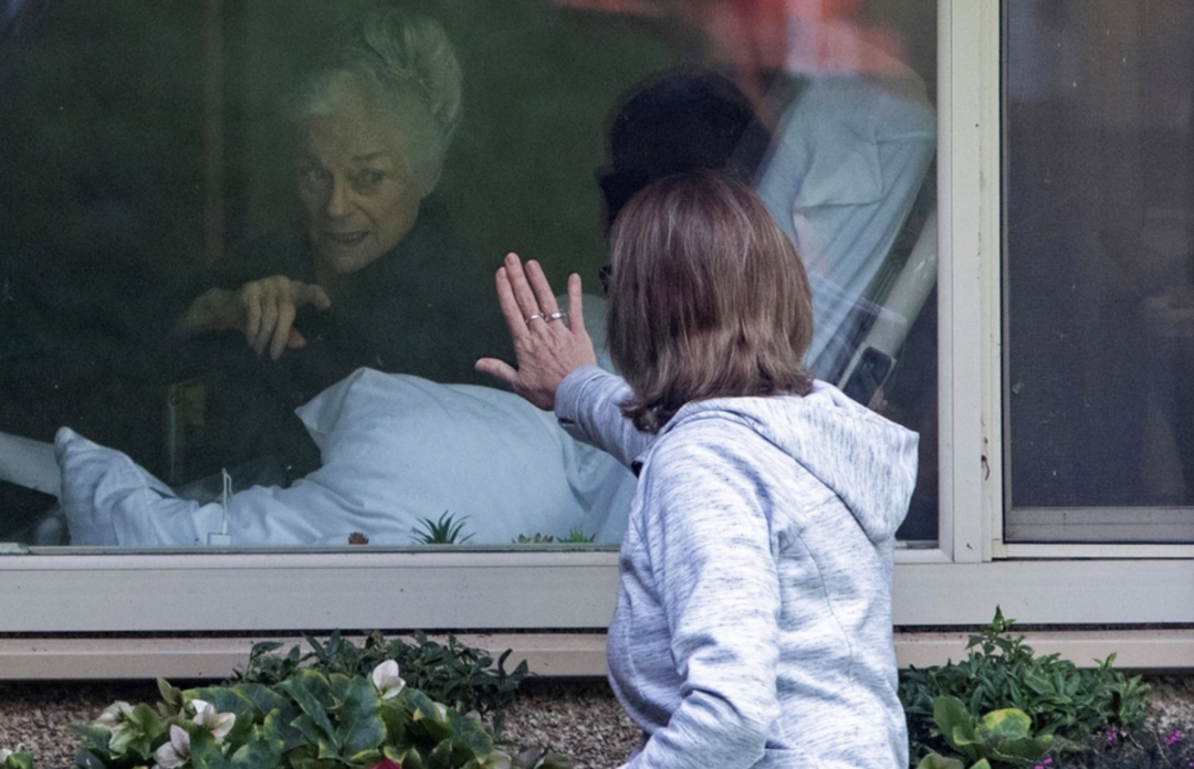女儿去养老院看望已确诊的81岁老母亲。