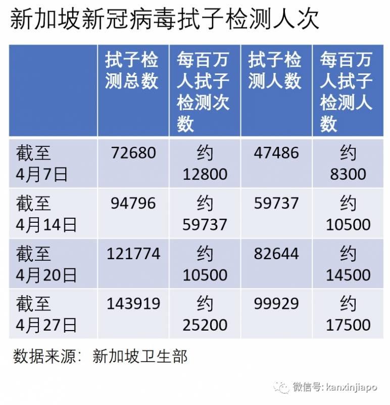 过去几周,新加坡累计检测14万人,3周内检测人数激增一倍。