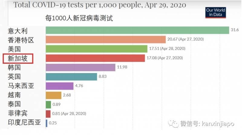 另外,在全球范围内,新加坡截止4月27日的检测水平为17.08,比上周4月20日的14.50高出2.58。