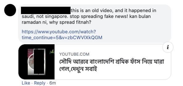 甚至有人上传了一段35秒的视频片段,该视频的内容是一名男子称自己是孟加拉国工人,由于缺乏工作和金钱而在大士宿舍中自杀,引起了巨大的负面影响。