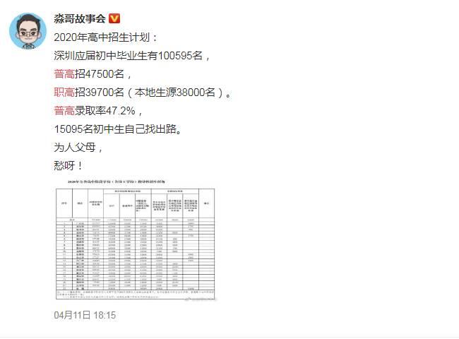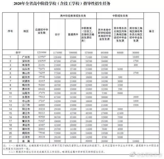 广东省2020年高中阶段教育招生总计1174000人,普通高中599000人,占比51.1%;中职教育575000人,占比48.9%。而深圳市普高录取率只有47.2%......