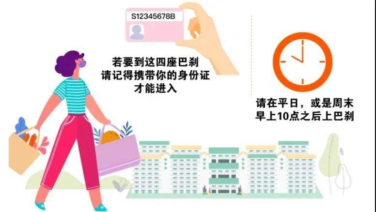 这时口罩成为人们日常出行的必备物品,出行还得保证一定的安全距离,为了方便寻找密切接触者,新加坡所有的超市、商场、巴刹的进入,都必须携带身份证进行登记或者扫描QR码,以保留大家的出行记录。
