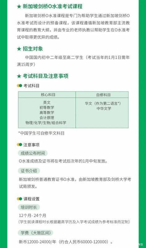 新加坡剑桥O水准考试课程