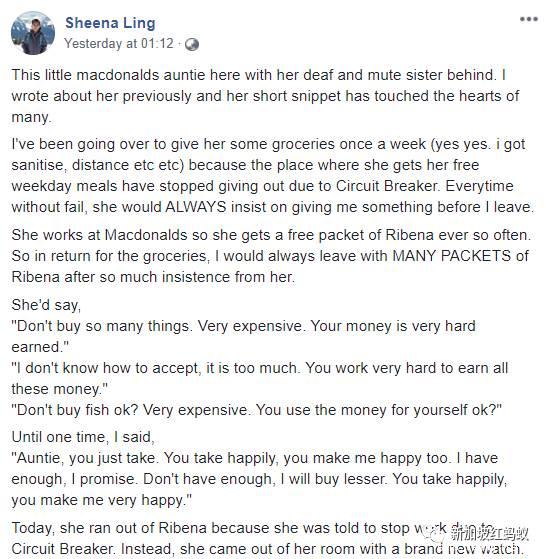 拥有最少的人给予最多! 今天这位“麦当劳婆婆”感动了无数新加坡人