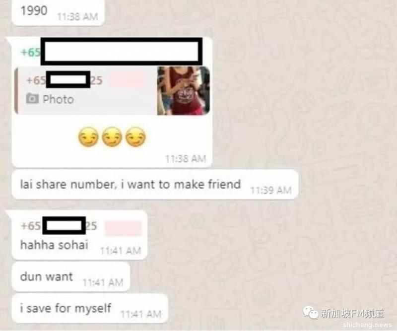 截图显示他在体温检测站前和在超市内拍下多名女子的照片,并通过Whatsapp群组分享给其他人。其中一张截图更显示,他询问群组其他成员是否要照片里女子的联络号码,随后又表示自己要“私藏”她的电话,不愿分享。
