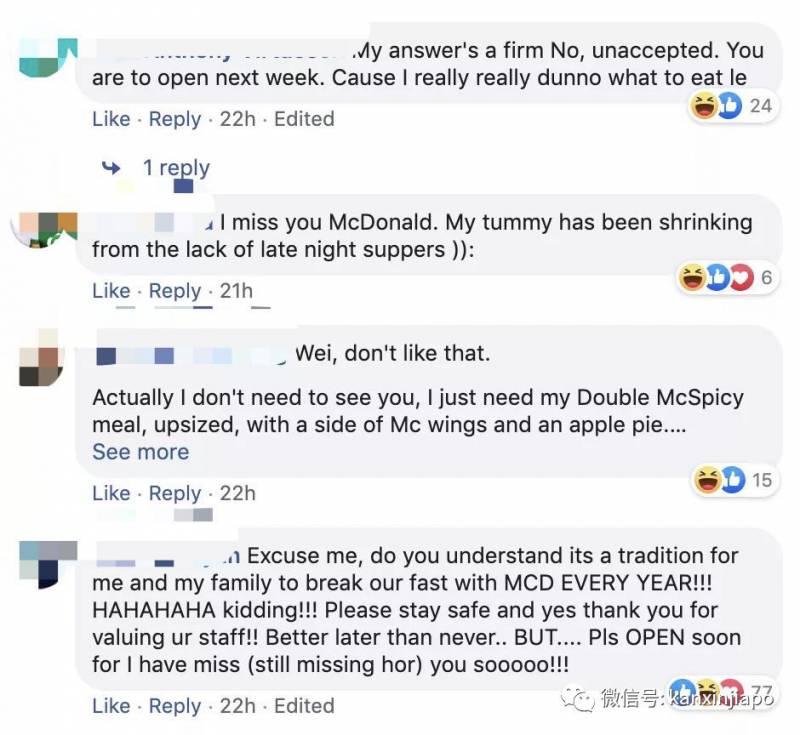 麦当劳日前因有员工确诊而宣布暂时关闭全岛店面,公众没了奶茶后再次失去麦当劳,简直是“双重打击”,网友们都表示非常想念麦当劳,希望麦当劳可尽快恢复营业。