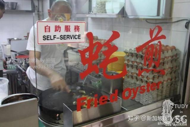大家一看名字,肯定脑海里想到的是:就是生蚝煎著吃呗!对,从名字上能看出来这道美食的做法,但是,最后做出来的味道充斥着浓郁的东南亚新加坡风情。新鲜的生蚝,裹着浓浓的蛋液,加上洋葱,就是带着海鲜的鲜味又有鸡蛋的甜味的新加坡蚝煎。一盘好的蚝煎,牡蛎必须大颗、新鲜,这样咬下去才会有多汁的感觉,淀粉的量要拿捏得刚刚好,否则就会过黏,炒蛋的火候也要掌握,让鸡蛋刚好松脆,而牡蛎又熟而不老,也是需要经验和技术的。下面这张图就是Billy点的,大家可以看到做蚝煎的Uncle(大叔)。(备注,老一代的师傅越来越少了,很多新加坡的年轻人都不愿意做这种工作,现在新加坡也有很多来自中国的厨师在炒菜,所以大家将来去新加坡,一定要多尝尝这些有这些uncle, auntie在的档口,这样才可以品尝到的最正宗的南洋风味和手艺!)