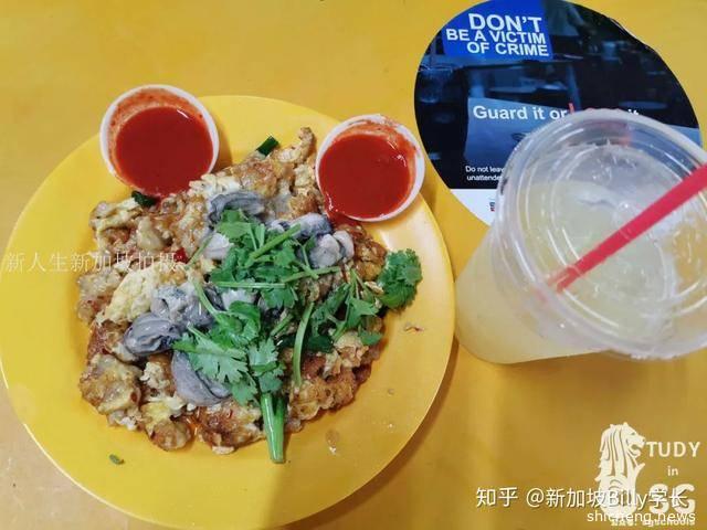 做好后的蚝煎就是这个样子滴~~还配有新加坡特制的辣酱。蚝煎的价格稍微贵一些,比之前介绍过的新加坡海南鸡饭和炒粿条稍贵。大家可以看到,价格差不多是5-7新币。