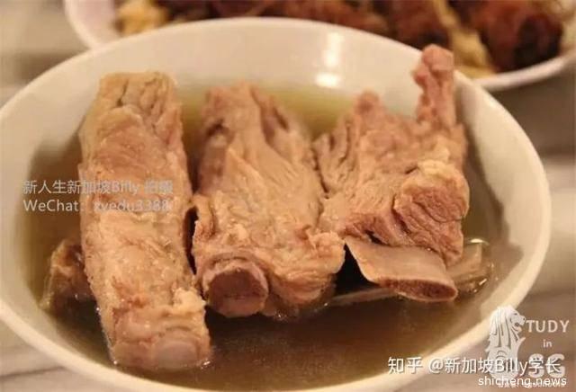 肉骨茶可以这么去理解,可以说是猪骨汤(不一定是排骨,但肯定是连肉较多的骨头),基本做法是猪骨加上香料、药材熬煮,香料包括肉桂棒、丁香、六角、胡椒,药材有当归和枸杞等。一般的配置是:一碗猪骨汤,一碗米饭(或油条)和一碗茶(或者是一碗汤)。新加坡人喝肉骨汤的同时喜欢喝茶是为了去油腻。新加坡肉骨茶几乎在所有吃饭的地方都能找到,但是每家的味道各有不同,其中最为著名的几家当属“黄亚细”、“发起人”和“松发”,在这里就不详细介绍了。价格方面一个人大概是10新币左右。