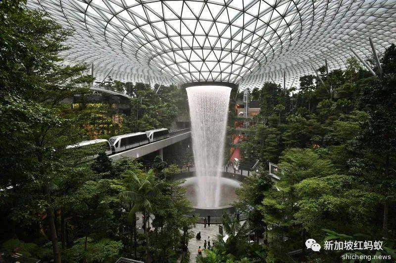 樟宜机场内的“星耀樟宜”标志性雨漩涡瀑布享誉全球。(海峡时报)