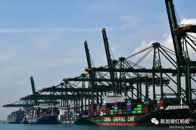 巴西班让码头上货卸货的繁忙景象。(海峡时报)