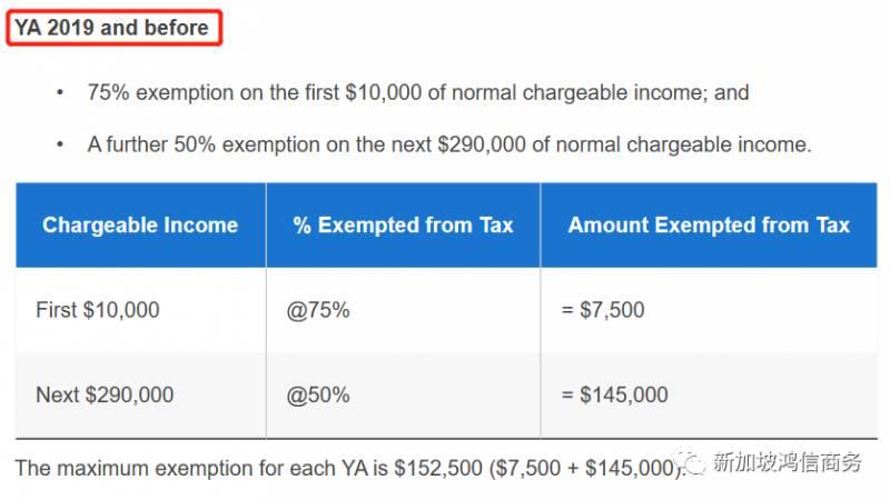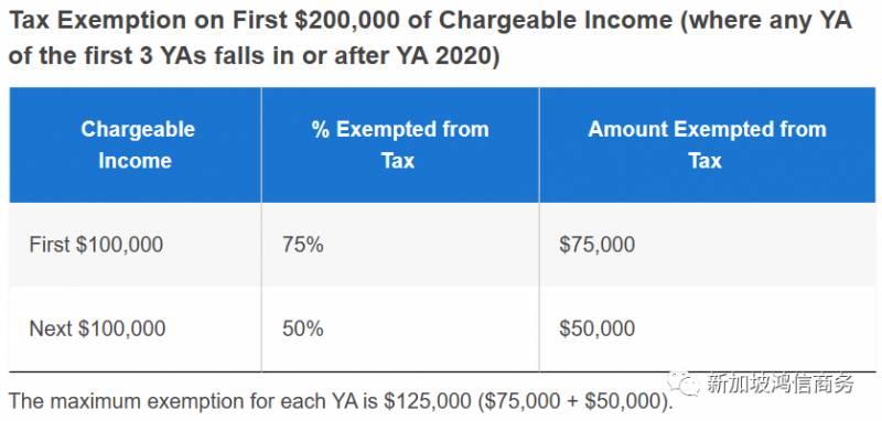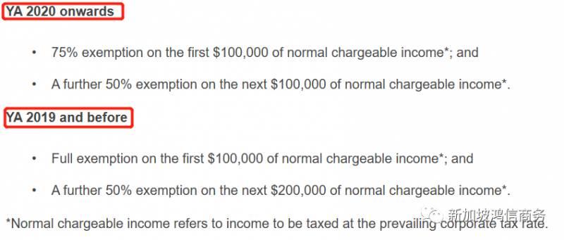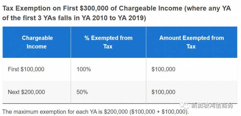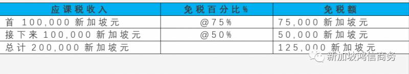 对新加坡非初创企业税务待遇计划:首1万新币应纳税收入中的7500新币免税、接着19万新币应纳税收中的9.5万新币免税(应纳税收入指该会计年度的净利润)、首20万新币当中的102500新币免税。