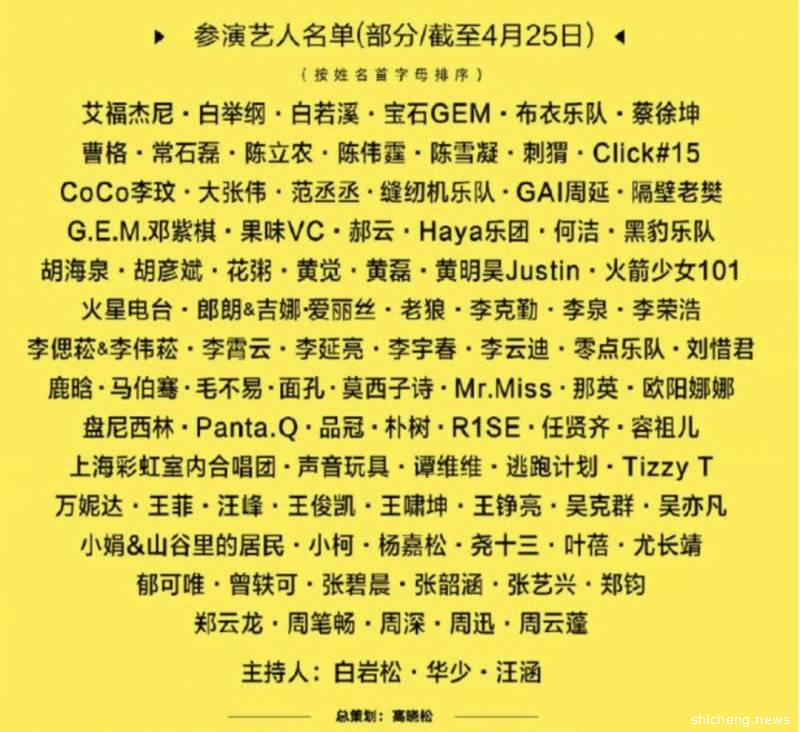 截止到4月25日,已宣布有100多位明星参与。天后王菲是一定会参加的~