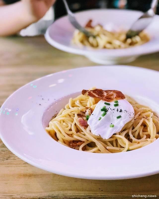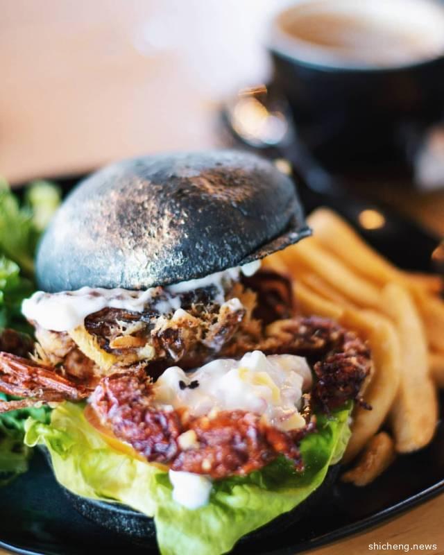 Italian Carbonara ($15.80)包括意大利面,大蒜,蛋黄,培根和芝士,上面撒上荷包蛋和香脆帕尔马火腿,或者可以尝一尝这个不一般的螃蟹汉堡。