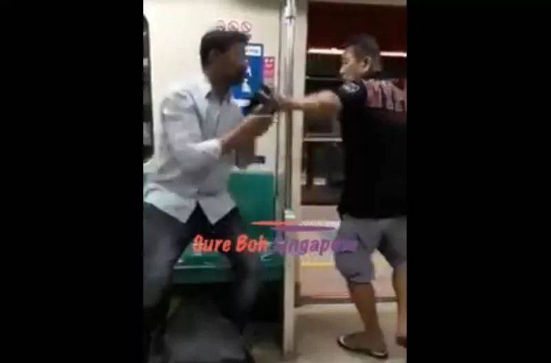 一位拿伞的黑衣男子不停朝蓝衣洋汉怒吼