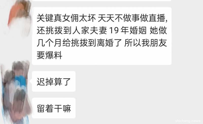 据有关网友爆料,这名女佣的品行也存在问题,据网友说,这名女佣天天不做事做直播,还挑拨到人家夫妻19年婚姻,她做几个月给挑拨到离婚了 。