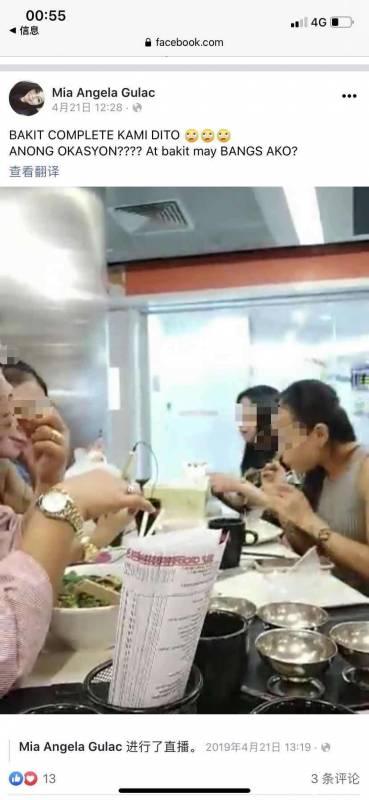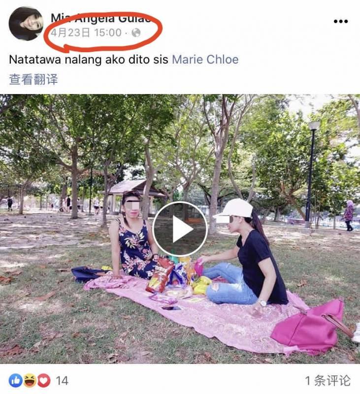 据4月21日(断路器期间)这位网名为Mia Angela Gulac的女佣在Facebook发布贴文显示,聚众开生日趴,并且一众人没有戴口罩,也没有保持安全距离措施。